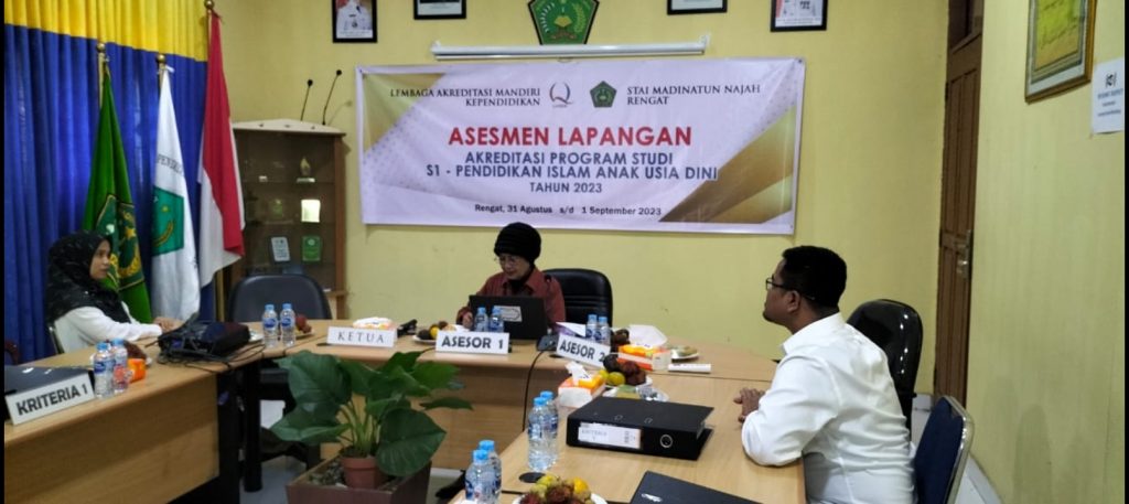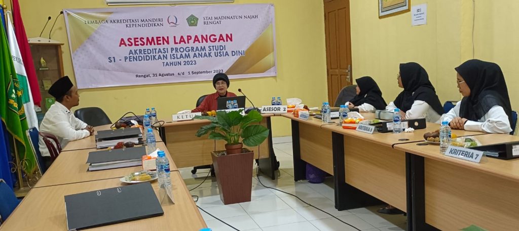Rengat, 1 September 2023 | Visitasi Program Studi Pendidikan Islam Anak Usia Dini memasuki hari ke dua, setelah menuntaskan kegiatan dihari pertama, hari kedua ini difokuskan pada monitoring proses perkuliahan yang dilaksanakan oleh dosen dan program micro teaching oleh mahasiswa. Disamping itu juga, dilaksanakan wawancara kepada mahasiswa, tenaga kependidikan dan dosen. Kegiatan tersebut langsung dipimpin oleh Prof. Dr. Rachma Hasibuan, M.Kes sebagai Ketua tim asesor dan Dr. Ocih Setiasih, M.Pd sebagai anggota. Kegiatan asesmen ditutup dengan penyerahan berita acara asesmen lapangan dan surat pernyataan.